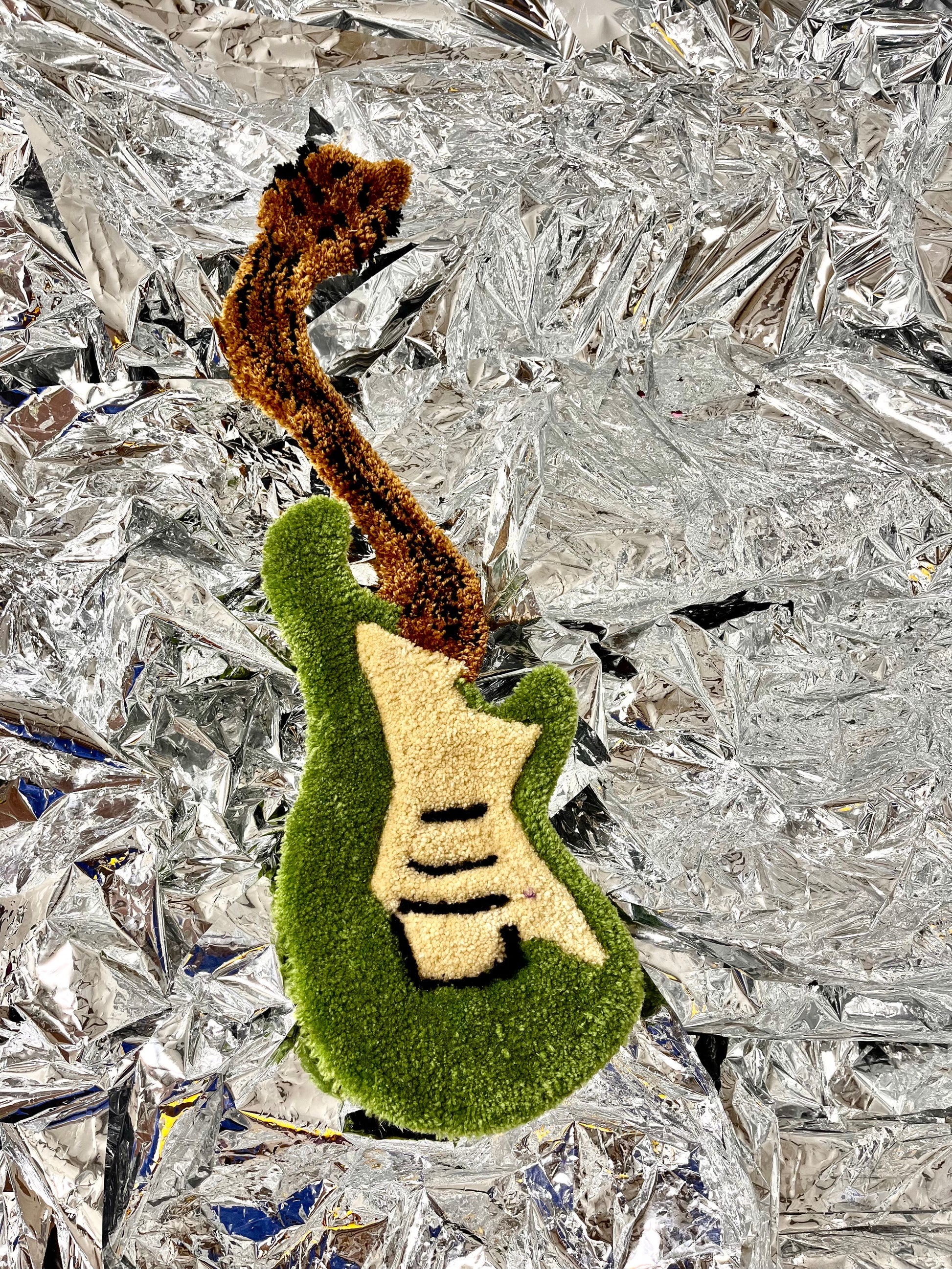 Introducing the perfect addition to any music lover's room - the green wavy guitar rug.